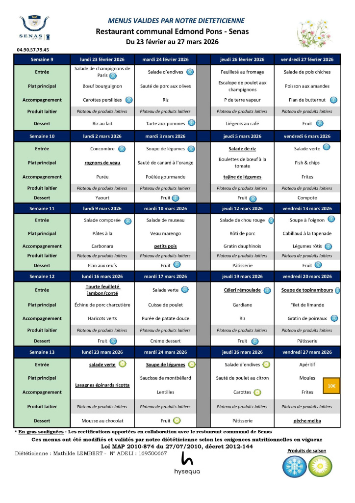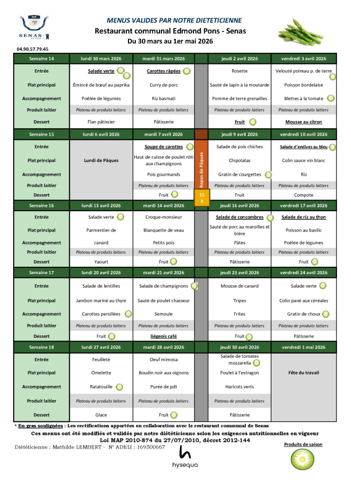« Amis séniors (anciens), cherchez-vous une “ bonne” table sur Sénas ? Un restaurant proposant une cuisine de qualité validée par une diététicienne ? Offrez-vous le plaisir d’aller apprécier les menus du restaurant de la commune au Cercle Edmond Pons. »